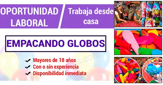 Se solicitan trabajadores para empacar globos, postúlate hoy.